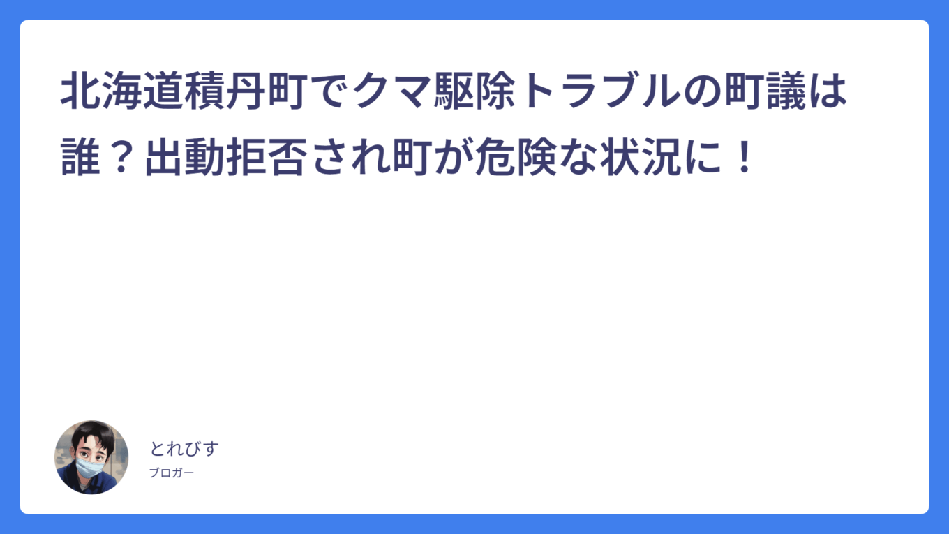 北海道積丹町でクマ駆除トラブルの町議は誰?出動拒否され町が危険な状況に! 2025.10.30 話題 torebisu くいっくげっとニュース 柴田淳は左派?高市首相に「男に媚びてきた」発言が誹謗中傷と炎上! 2025.10.30 話題 torebisu くいっくげっとニュース 小野田紀美のモデル時代の姿が美人過ぎる画像!コスプレやウエディング姿も! 2025.10.27 話題 torebisu くいっくげっとニュース 小野田紀美のシルバードレスどこのブランド?値段は?他の議員と被ったてると話題に! 2025.10.24 話題 torebisu くいっくげっとニュース ハーフの小野田紀美の国籍は?二重国籍を解消!家族や経歴を解説! 2025.10.23 話題 torebisu くいっくげっとニュース 小野田紀美は結婚相手・旦那は?子供はいない?家族について解説! 2025.10.22 話題 torebisu くいっくげっとニュース 石原宏高の嫁・彩さんはどんな人?結婚の時期や馴れ初めは?子どもはいるのか? 2025.10.22 話題 torebisu くいっくげっとニュース 無印のサイトが見れないのはなぜ?サイバー攻撃の影響で流通停止! 2025.10.20 話題 torebisu くいっくげっとニュース 笹﨑勝巳の現在は?温泉施設で死去の従業員は本人なのか徹底調査! 2025.10.17 話題 torebisu くいっくげっとニュース テレビタックル炎上中の女優・高陽子の国籍は中国人?wikiや経歴を徹底調査! 2025.10.14 話題 torebisu くいっくげっとニュース もっと見る