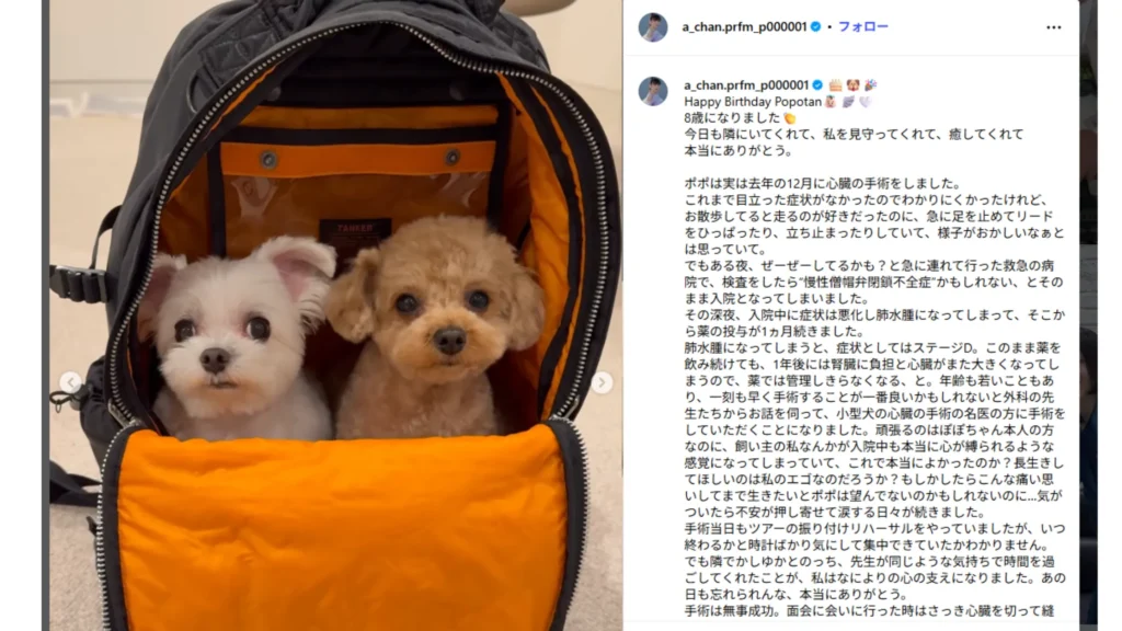 8月5日には愛犬をPORTERのリュックに入れている動画を公開しています。