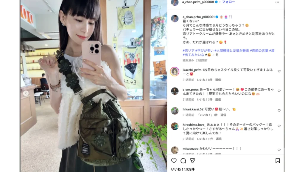 実はインスタグラムを覗いてみると、あ~ちゃんの「におわせ」行動だったのではと指摘されている写真がアップされていました。