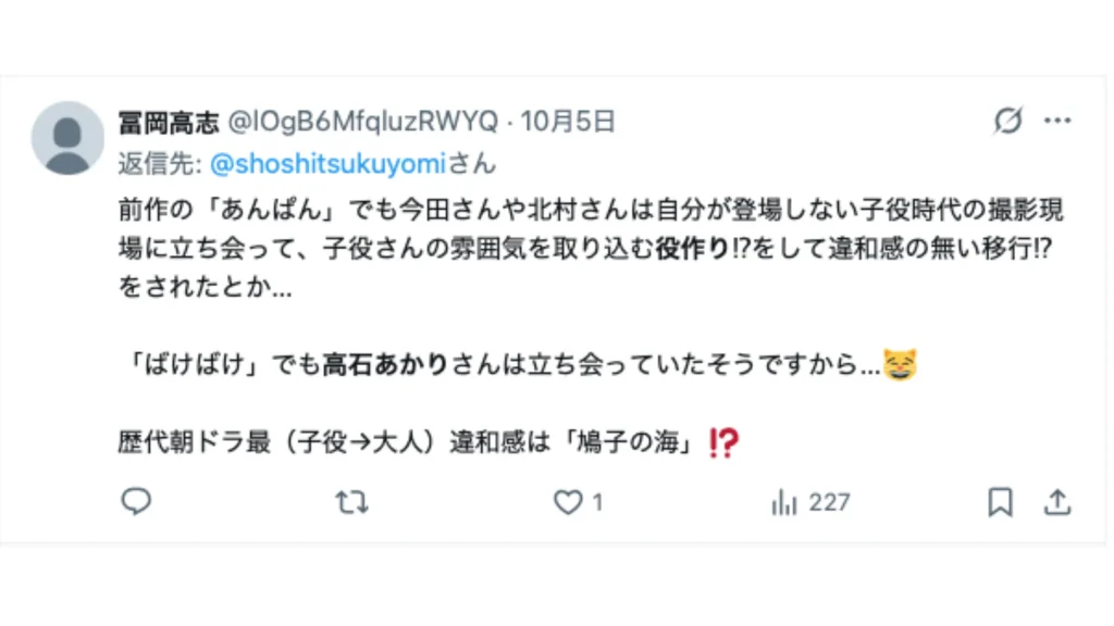中にはNHKの連続テレビ小説は長期の撮影になるためかなり大変だとの話を聞くため、疲れているのではないかと感じるファンもいるようです。